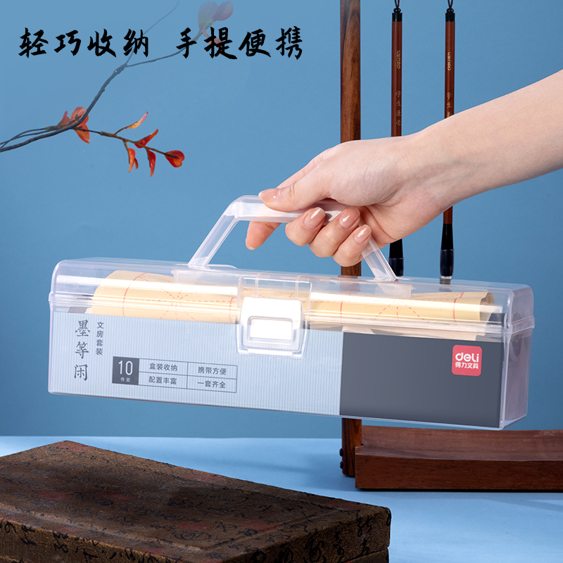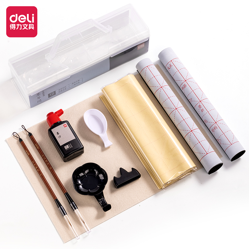 | 商品名称: | 得力文房四宝10件套装带工具箱 HW515书法毛笔练字套装 |