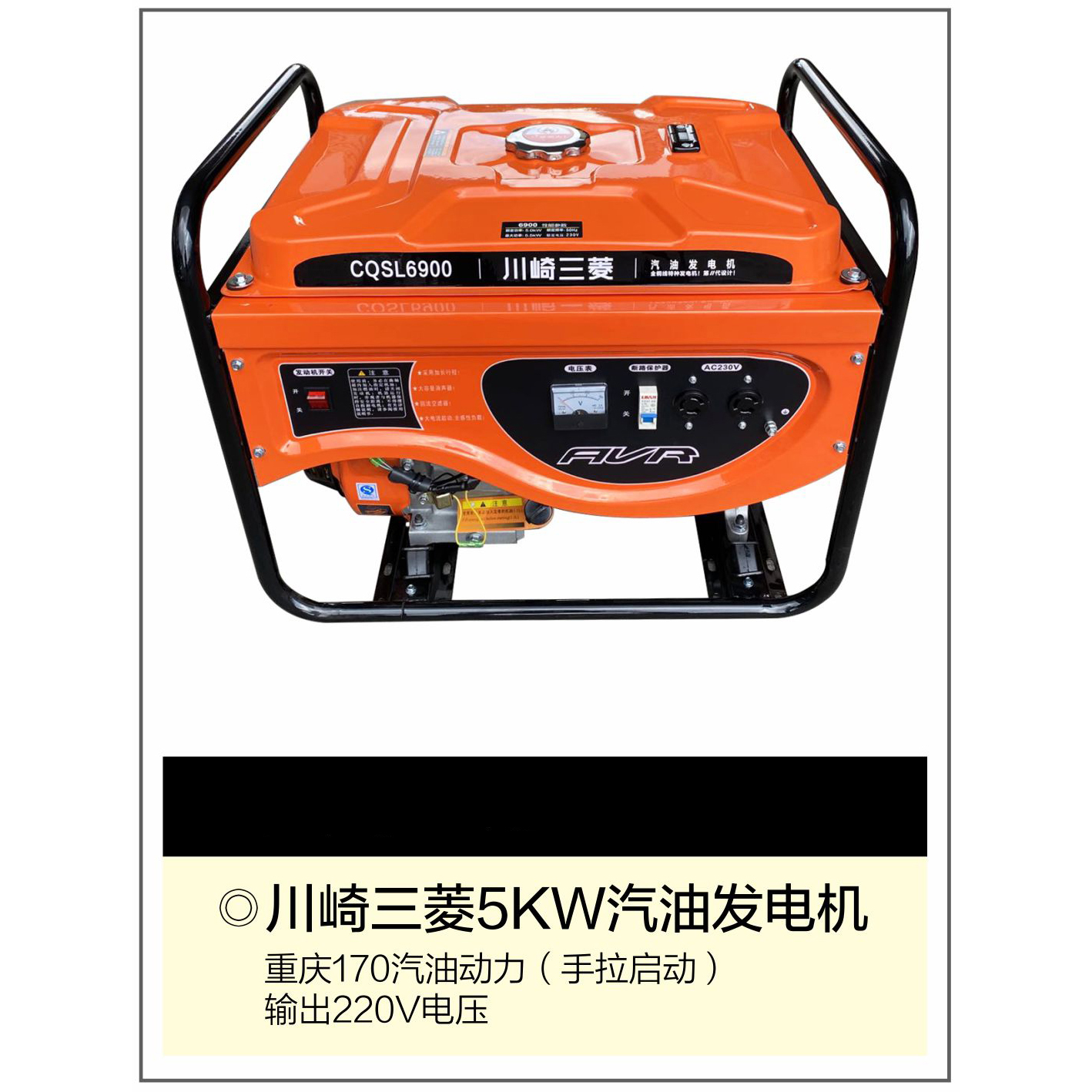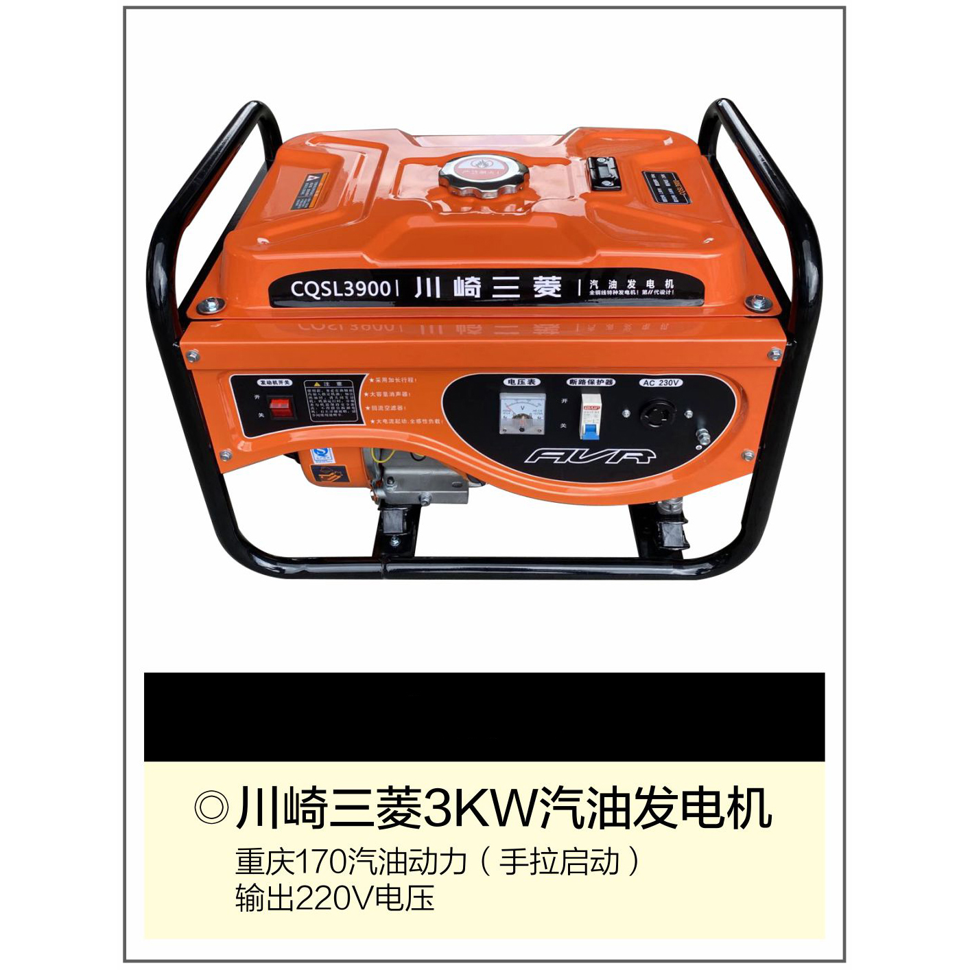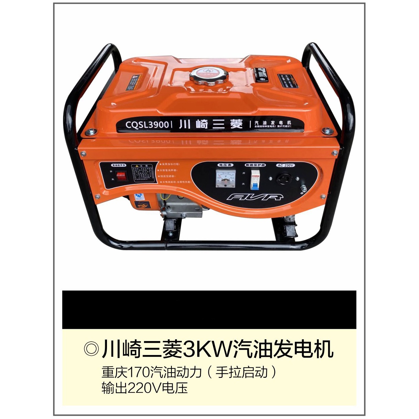| 商品名称: | 川崎三菱3KW/5KW汽油发电机(重庆170汽油动力 手拉启动 输出220V电压) |